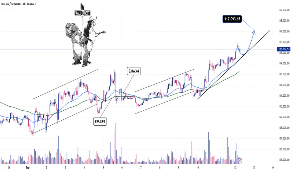 Saat ini, harga berfluktuasi di sekitar level 115,4 ribu, dengan target jangka pendek mengarah ke area 117 ribu. Ini merupakan level resistensi yang penting dan juga area yang menentukan tren selanjutnya, karena jika berhasil ditembus, pasar kemungkinan akan memperpanjang tren naiknya ke 118,8 ribu – puncak terdekat.