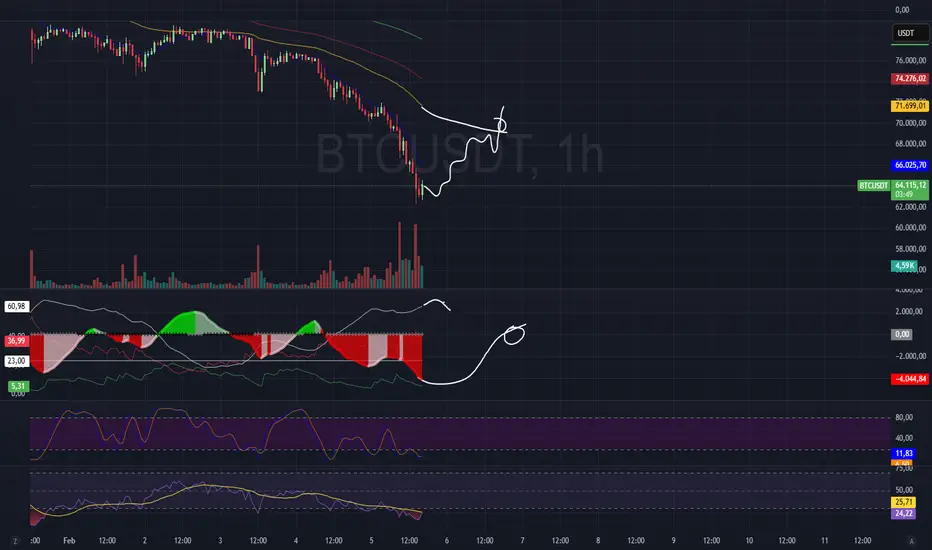 ya cayo lo demasiado btc, ya toca un rebotre a la ema 55 como minimo en 1h asi que una vez el adx se gire a la baja con el valle rojo, to entro en long suavecito a 5x