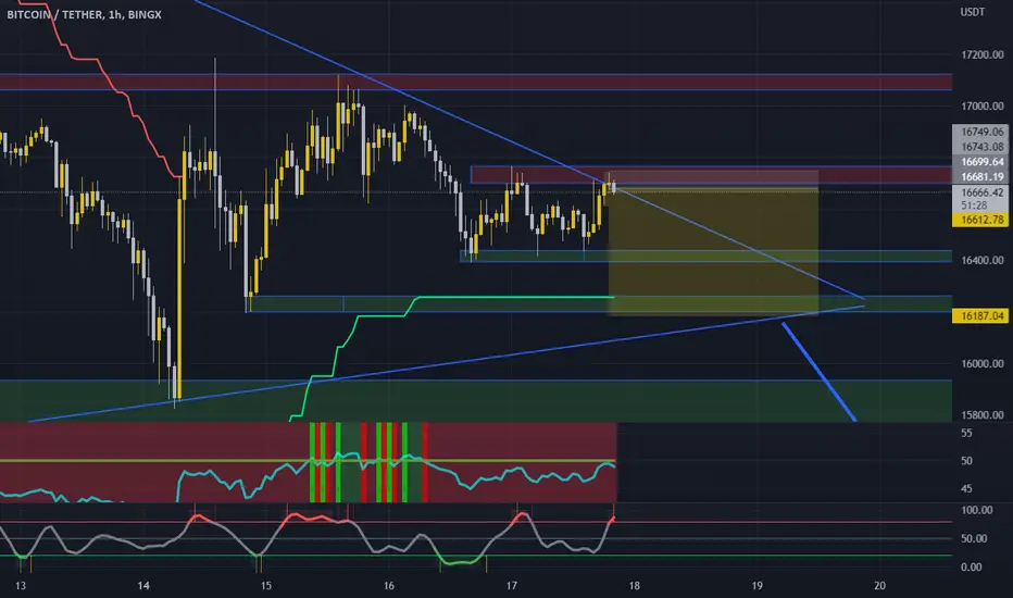 Podemos ver la formación de un triángulo en la acción de precio de Bitcoin coincidiendo con una resistencia, espero que esta ruptura sea falsa coja liquidez y devuelva el precio al rango para darnos beneficio, un saludo