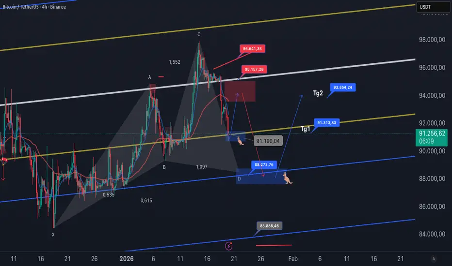 Antes de llegar a 88 k el precio podria rebotar a 4 horas si logra mantener los 91200