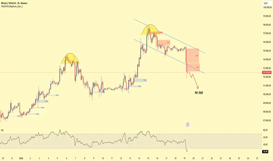 Si el precio continúa siendo rechazado en la zona de oferta actual, es probable que BTCUSDT extienda su caída hacia la zona de 90.500, donde se concentra la liquidez y el soporte más cercano.