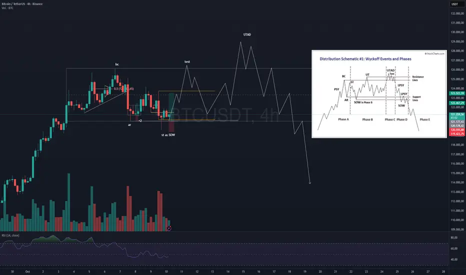 Btc se encuentra actualmente en fase B de un rango distributivo en temporalidad de H4.
