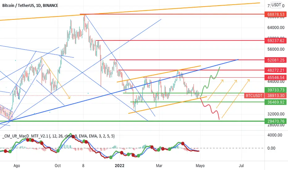 El área por debajo de los $40.000 se ha convertido en la zona de soporte, y aquí en este momento pueden ocurrir dos cosas, una es que se produzca un nuevo test de la zona de los $45.000 - $48.000, o por el contrario que se pierda el soporte cerca del nivel de los $35.000 en cuyo caso podríamos llegar a los $30.000 e incluso menos.
