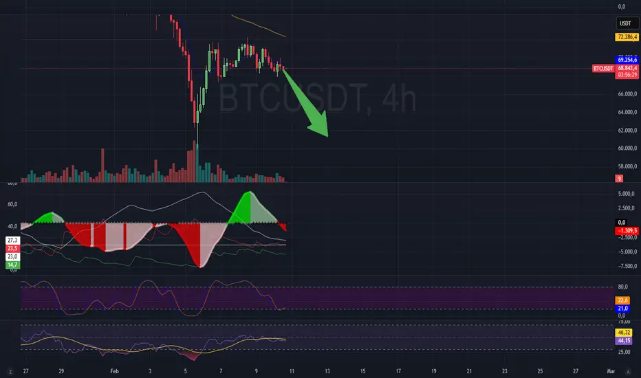 Proyectando el grafico de 4 horas mi proyeccion sigue siendo para abajo y en 1h tiene fuerza negativa asi que puse una flecha para que el Jueves o Viernes veamos si se cumplio o no mi proyeccion