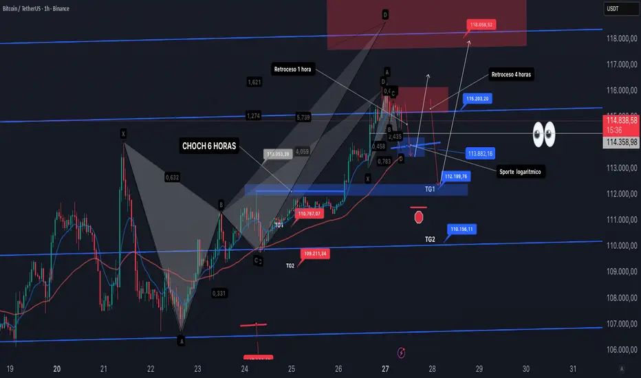 la caída. máxima si pierde los 113900 podría buscar el CHOCH que hizo a 6 horas