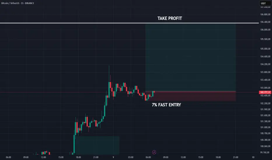Entrada rápida en Bitcoin, en largo, entrada ya, para beneficio en 106388