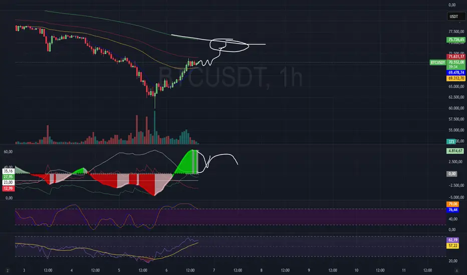 ya que la proyeccion de ayer fue brutal, el dia de hoy proyecto un pequeño ranjo para por fim llegar a la ema de 55 en 4 h esa seria mi proyeccion