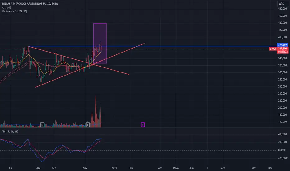 1. Byma siguio su tendencia alcista y supero la linea azul de de los 378 -