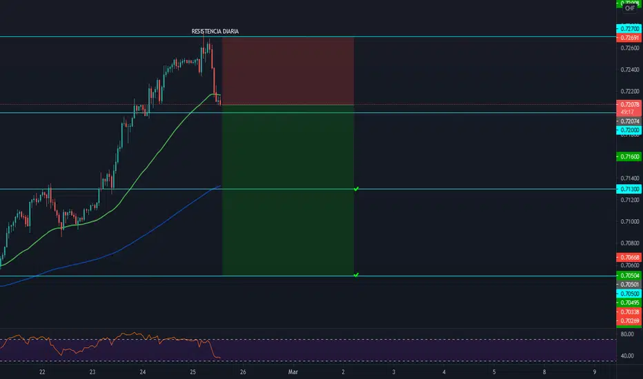 En este papel podmeos observarque el el precio ha llegado a una Reisstencia Diaria (0.72700) y podemos ver ya su reacción.
