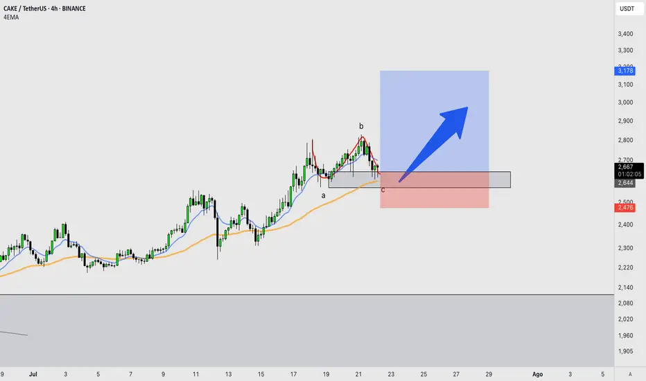 Posible impulso en h4 para tradear cake, aqui vemos una corrección en abc