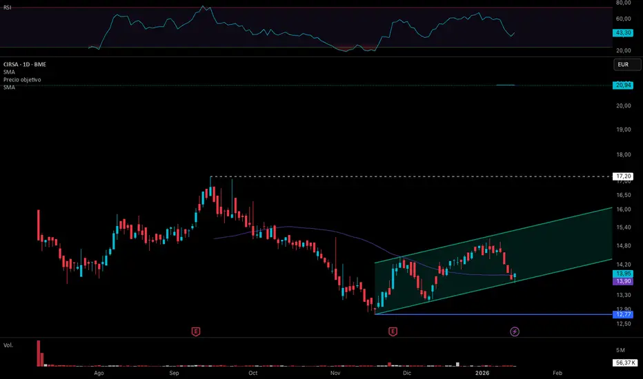 Poco histórico. Monitorizamos el valor como apuesta de medio plazo. Tercer toque a la base de un canal creciente de cp.