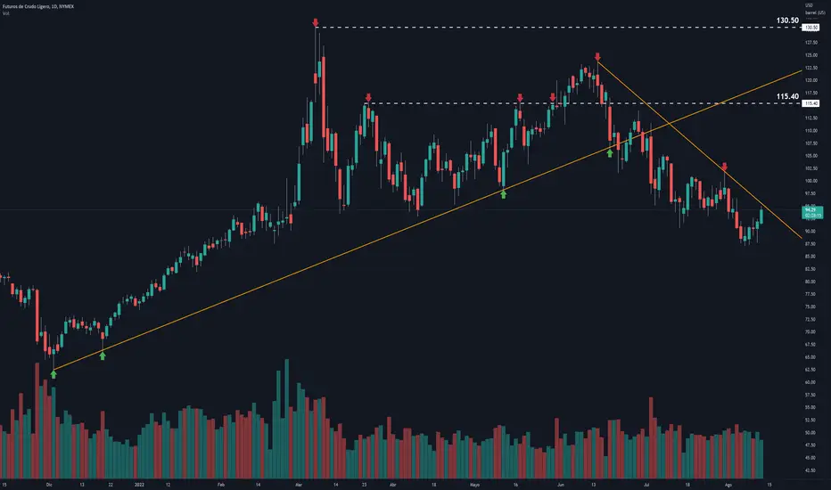 CL1! por el momento se encuentran frenados por la resistencia dinámica bajista en torno a los 95 dólares.