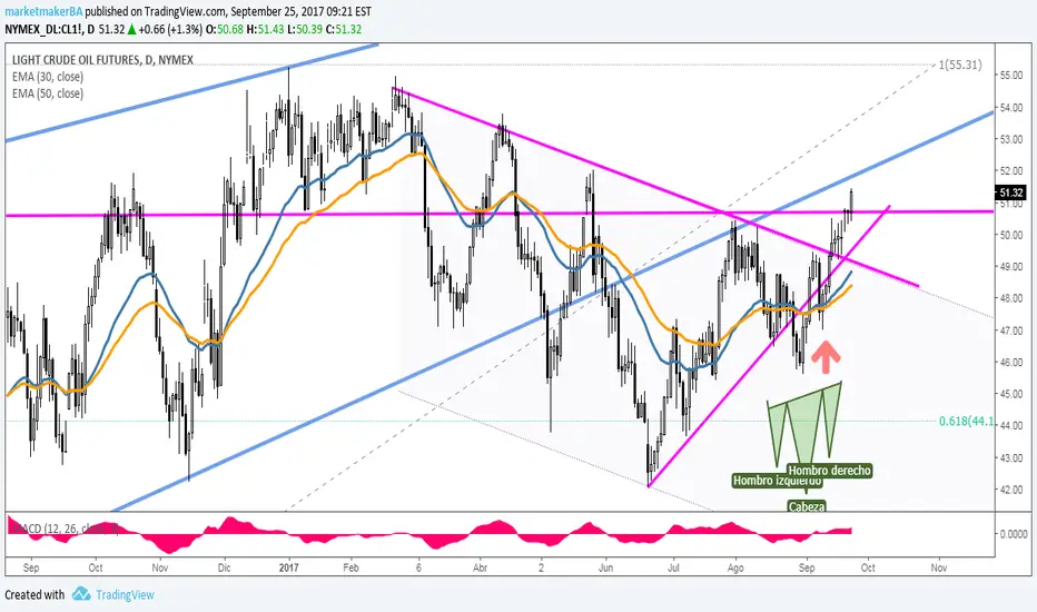 Sale de un HCH invertido con ruptura en los $50 nueva zona de soporte y SL para entradas de corto plazo