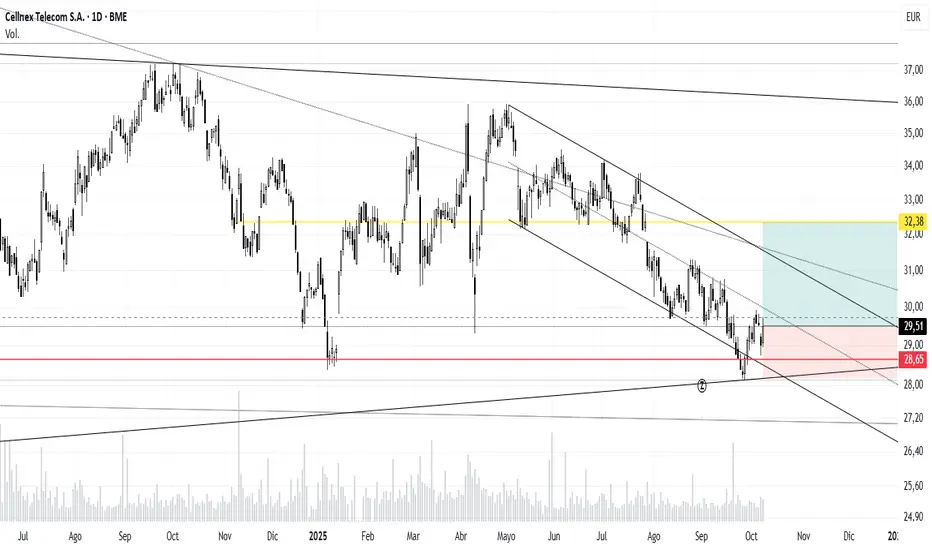 Dentro de la estructura en la que se encuentra Cellnex desde hace tiempo se propone este movimiento hasta el precio de apertura anual, al haber reaccionado en zonas donde anteriormente el precio se ha girado.