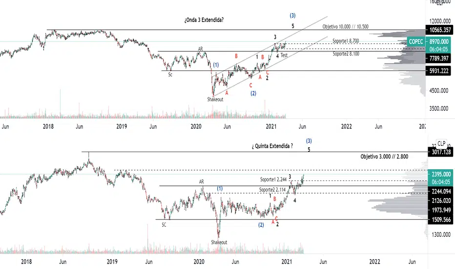 Copec, rompe la resistencia de los 8.700; en desarrollo Onda 3 extendida, buscando los máximos históricos.