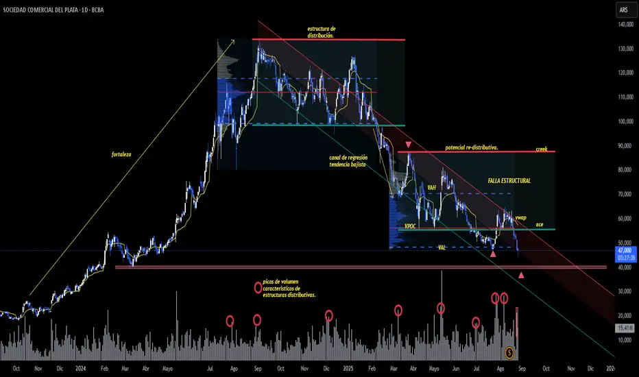 Solo con un quiebre sostenido de la zona de confluencia del VPOC y el ACE en los $55–60, acompañado de volumen de demanda creciente, se habilitaría un rebote mayor hacia el VAH $70, aunque hoy luce menos probable mientras la estructura siga siendo de redistribución.