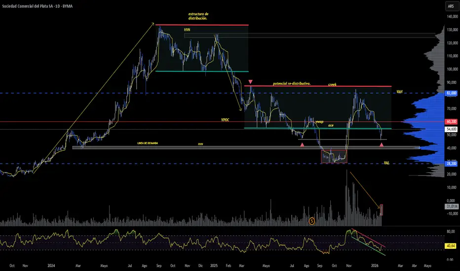 • VPOC claramente por encima del precio actual → el mercado sigue aceptando valor más alto.