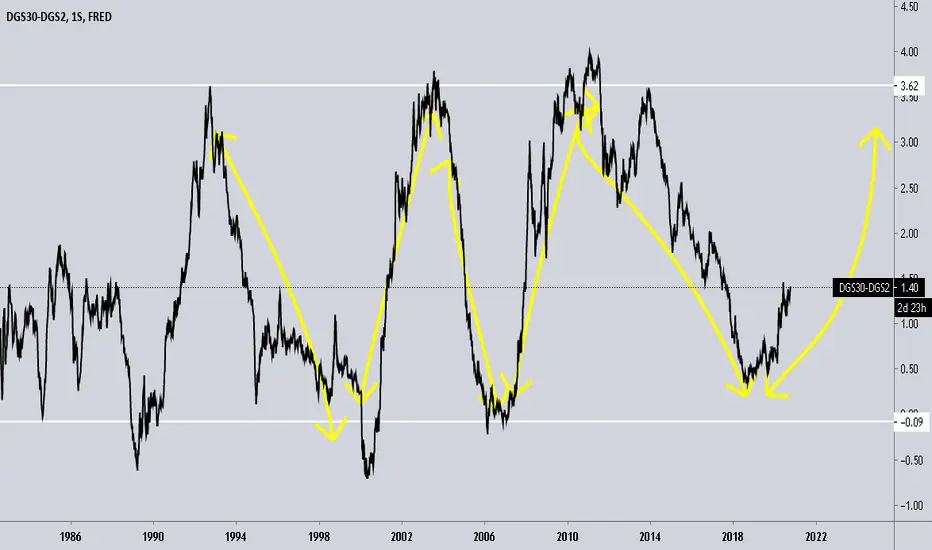 el entorno reflecionario deberia decirse ...cuanto me cuesta financiarme 10 años 2 años ESTIPENIN nos llevara a cotas mas altas porque este diferencial ,los tipos a cortos plazo nose movera porque , la reserba federal no permitir que se suba la suba de interes no viene nada bien al mercado y tipo de endudamiento tan grande que tiene ,pero a largo plazo si que se van mover,los cortos plazos apenas se va mover comparado con los largos plazos lo que provacara la rotacion de los sectores ,los sectores que mas se beneficiaran los bancos y las aseguradoras cuanto mas suba la retabilidad en plazo diez años mas mas van batir contra el sp500 comprara los bamcos con ps500 ( grafico anteriror )cuando detecto cuando la rentabilidad es alta los bancos lo hacen mejor cuando la taza es baja lo hace mejor que sp 500 ,ley monopolio