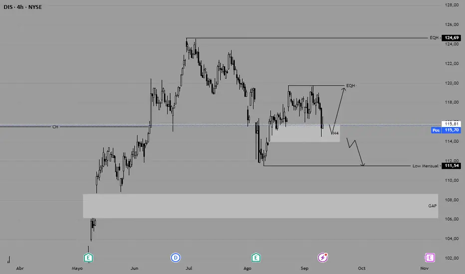 Tengo mis dudas con Disney, viene bajista aunque todavía no saco liquidez relevante en temporalidades alta tranquilamente lo veo buscando el low mensual pero después de ahí no lo tengo seguro que rebote tiene muchos gap por debajo a demás de que viene en una tendencia bajista