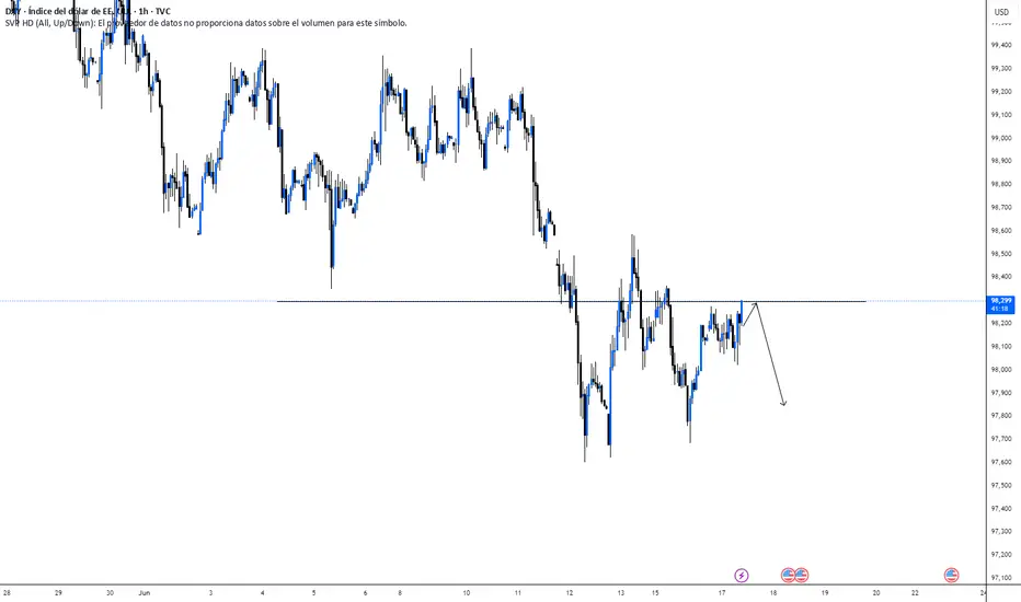 Si aparece un catalizador positivo inesperado (acuerdo político, mejora en datos o discurso hawkish que vendrá el día de mañana con Powell aun que eso lo dejo para otro analisis), el DXY podría romper la resistencia y buscar 98.60–98.80.