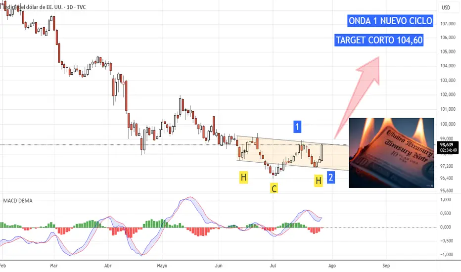 Dicha figura deberia terminar en 5 movimientos en un target de 104,60 para un nuevo ciclo de crisis global de deuda y de mayores tensiones geopoliticas.