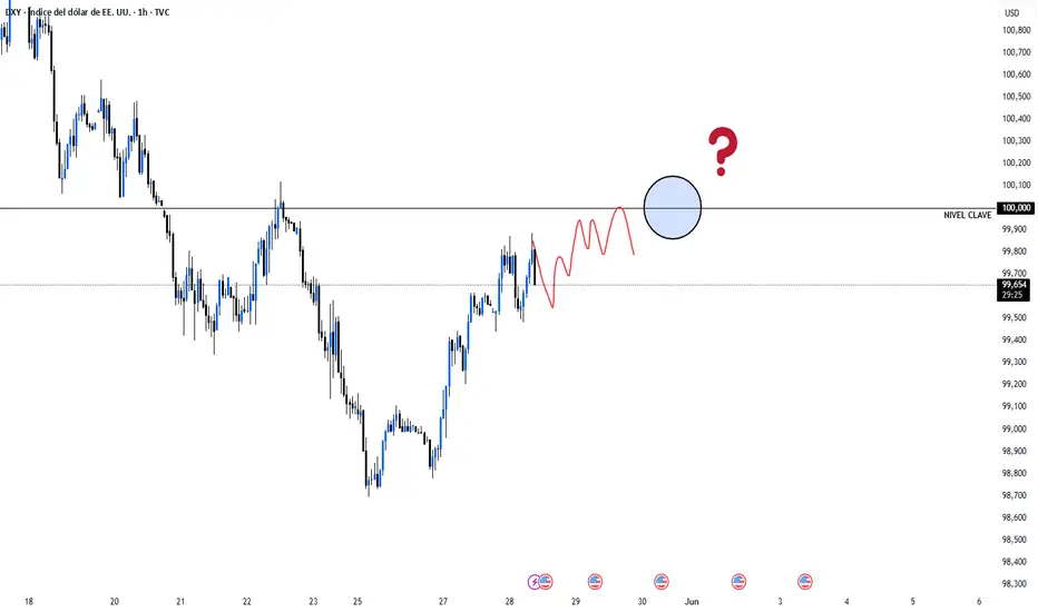 El índice del dólar (DXY) se encuentra nuevamente tocando la zona de 100 puntos, un nivel clave tanto técnica como psicológicamente. Este movimiento viene impulsado por una combinación de datos sólidos (confianza del consumidor, apoyo fiscal de Trump) y la expectativa de un tono hawkish en las minutas de la Fed.