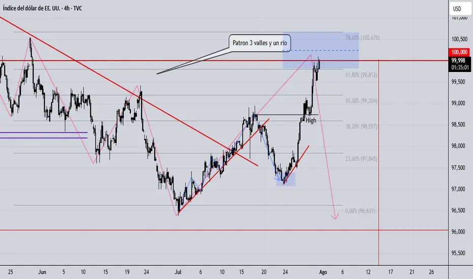 Luego del cumplimiento de un patrón visual, se espera l a reacción del índice de dólar americano, con esto movimientos en todos los pares relacionados incluyendo el BTC