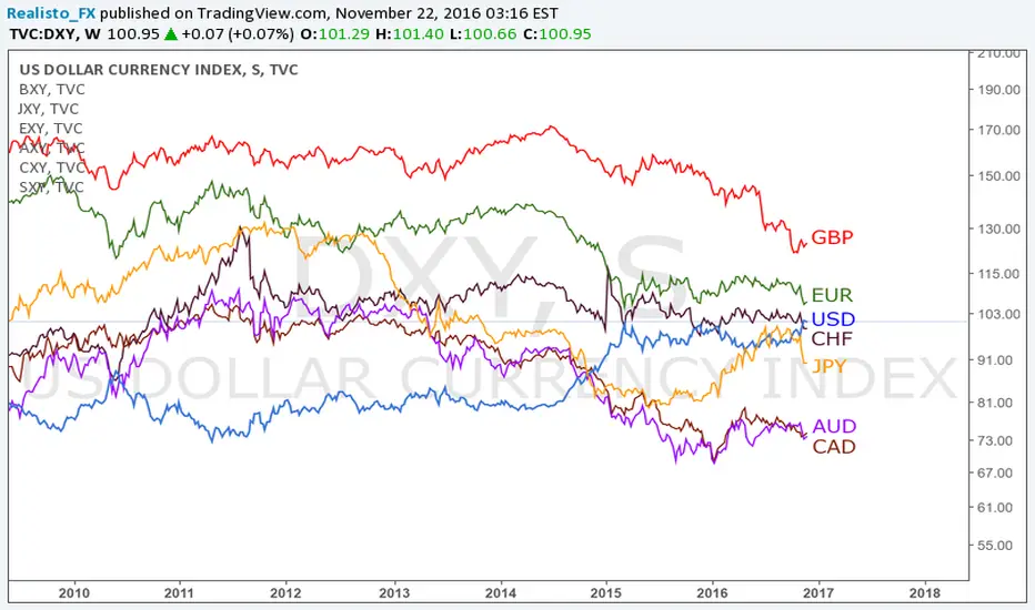 El índice más conocido es el US Dollar, DXY, pero también existen para el resto de pares :