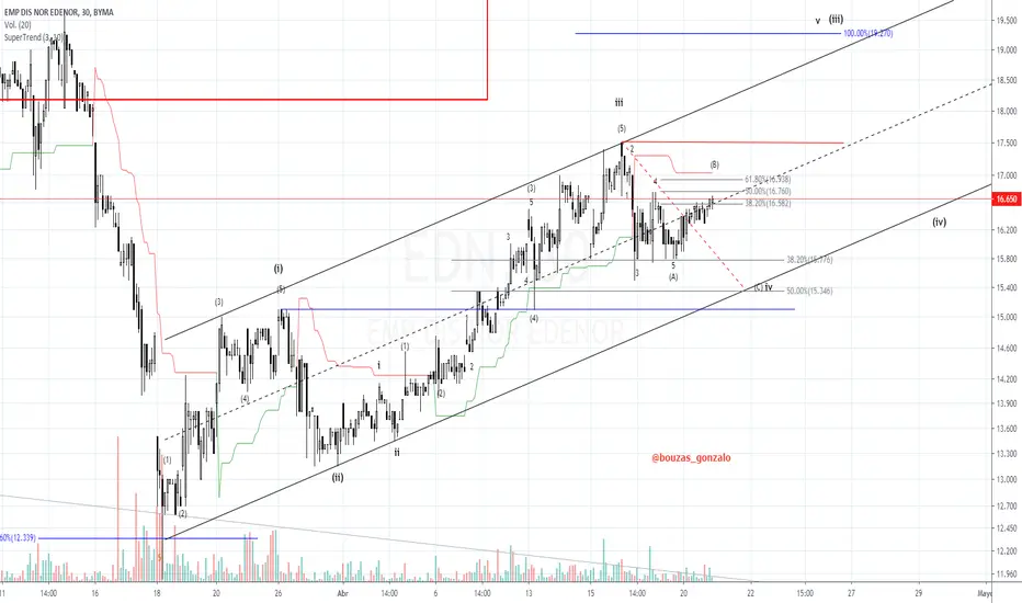 Se espera B hasta el 61.8= 16.93 y luego C hasta el piso del canal coincidente con el 0.50 de Fibonacci =15.34