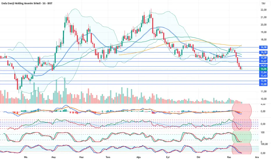 Günlük teknik indikatörler Negatif. Hisse son 5 senasını da düşüşle kapatarak 13,84 desteğine kadar inmiş durumda. Bu desteğin üzerinde hafif bir tepki geldiğini görüyoruz. Destek devam eder ise tepki alımlarının gelme durumu bu destek fiyatının üzerinde yaşanabilir. İndikatörlerinde alt seviyeye inmesi ve hafif yukarı yönelmesi bu ihtimali biraz daha güçlendirmiş olabilir.