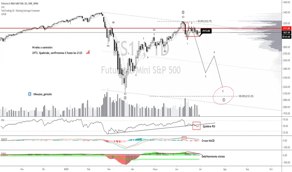 Quebrado a la baja el POC en la zona de los 3116, debemos controlar la zona de los 2973 que corresponde con el máximo de onda 1 de C (o sub onda 1 de onda 1 de C)