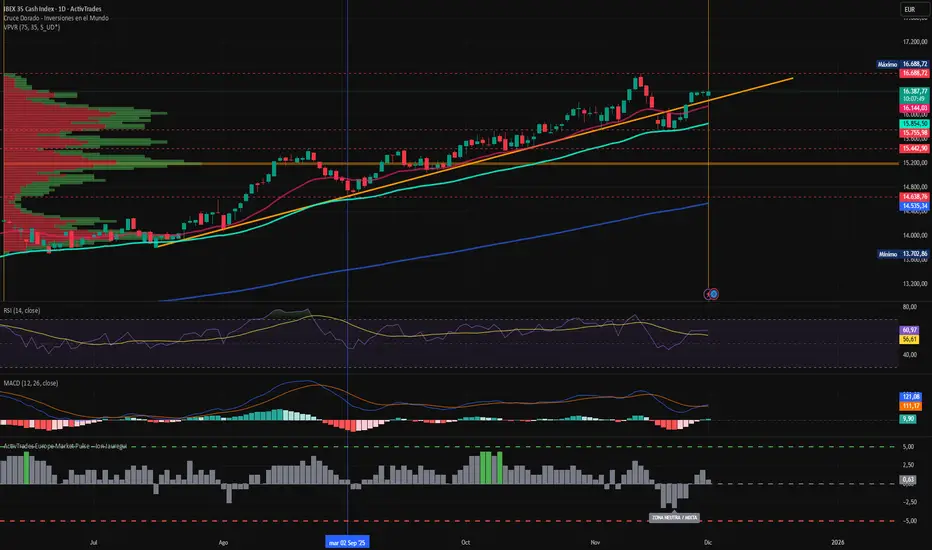 En el plano técnico, el IBEX 35 presenta una de las tendencias alcistas más limpias de los últimos años. La ruptura de los 16.500 puntos confirmó un nuevo tramo de impulso que proyecta al índice hacia el próximo gran desafío: los 17.000 puntos, ahora principal resistencia psicológica y técnica.