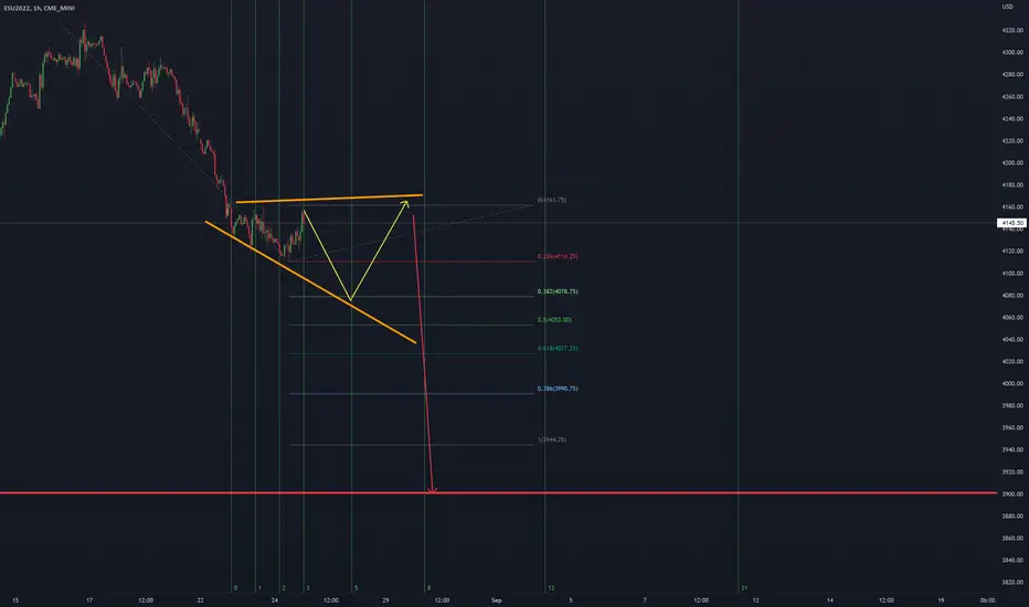 Análisis chamánico, extensión de Fibonacci inversa con líneas temporales de Fibonacci. La idea a tales momentos previo a la conferencia de Jackson Hole, seria vender el rumor y comprar la noticia. Creo que a nivel macro el sentimiento es tan bajista que me cuesta creer que sea tan fácil y creo que habrá un ultimo movimiento al alza en forma de bulltrap antes de visitar el 3552. este escenario que planteo encaja muy bien con esta figura chartista y las líneas temporales.