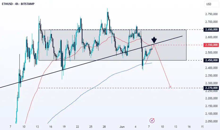 📈 Para recuperar impulso alcista, ETH debe romper y consolidarse por encima de $2.550, lo que abriría espacio hacia los $2.800.