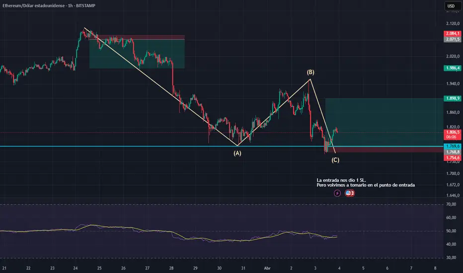 Tomamos un ABC LONG en Etherium. Hasta el momento salto 1 SL, tengo mas balas para entrar en caso de que me saque de nuevo.