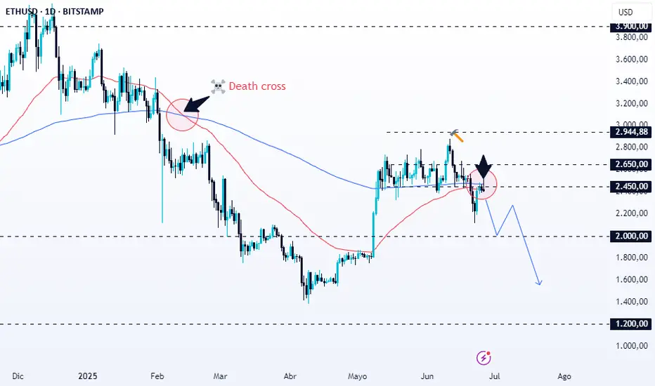 📌 Ethereum intentó recuperar la zona de $2,650, pero fue rechazado con fuerza justo en el área del cruce bajista.