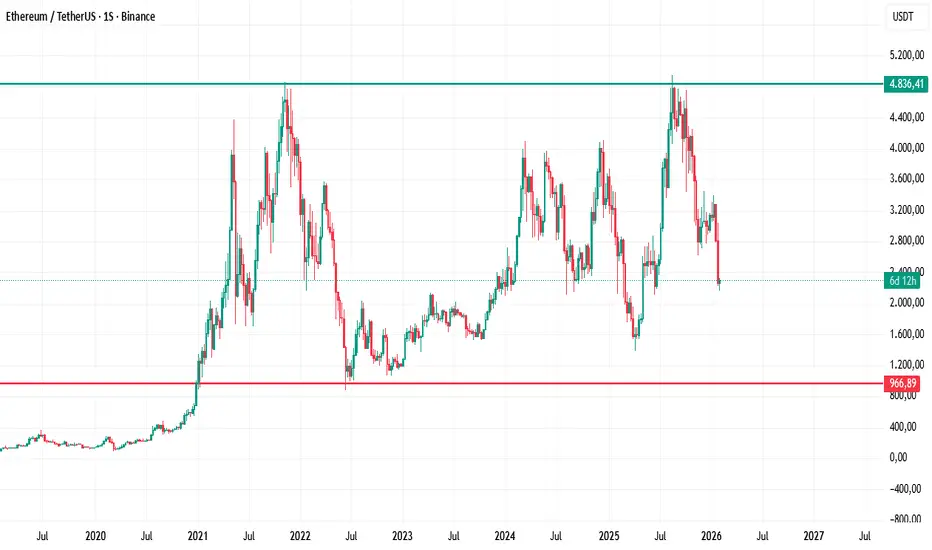 Ethereum se encuentra en una estructura macro neutral, con un techo claramente definido en los 5.000 USD y un precio actualmente muy alejado de esa zona.