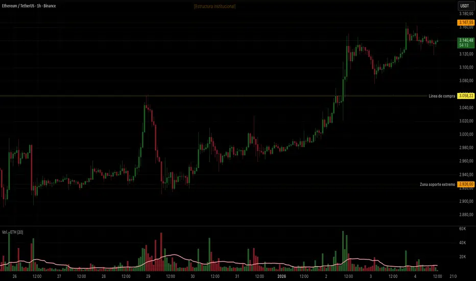 2) Ruptura al alza con volumen mayor a 15 ETH en 5min y luego vela de confirmación sin mechas ni retrocesos.