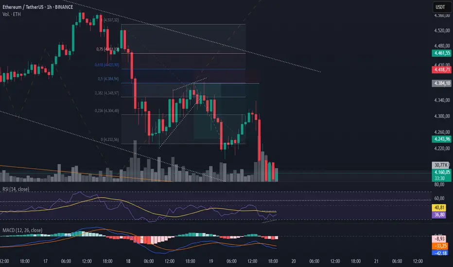 Idea de entrada Short en el Part ETH/USDT tomando la continuación de tendencia, la idea es operando FVG usando la coincidencia con el Retroceso Fibonacci.