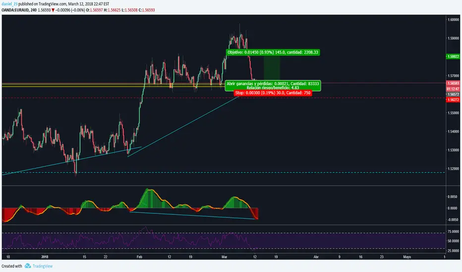 Clear buy in EURAUD, just be aware about the news, goal 150 pips, divergence in macd and price