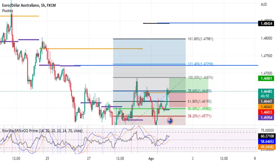 Largo EURAUD - Tifecta + Fibonacci + RSI + Heat map (01-08-2022)