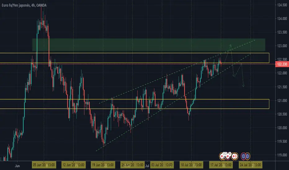La entrada en corto estaría dada en las zona amarilla en 123.000 con TP1: 121.500 -- TP2: 121.000.