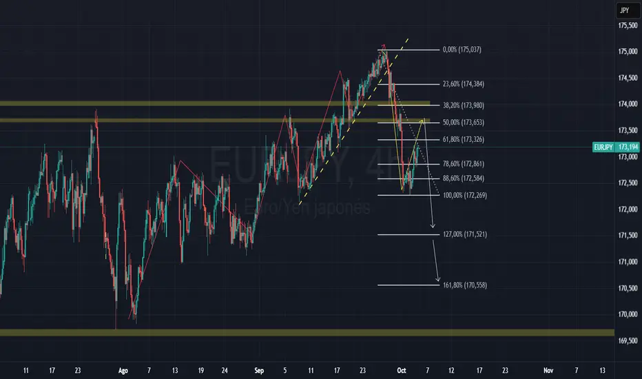Marco mis zonas de fibo Diario donde posiblemente pudiese llegar el precio ( zonas sombreadas inferiores) y teniendo estructura bajista en h4 tambien marco mis zonas de interes ( zonas sompreadas superiores) para contempar el probable ingreso en las VENTAS segun la acción del precio .