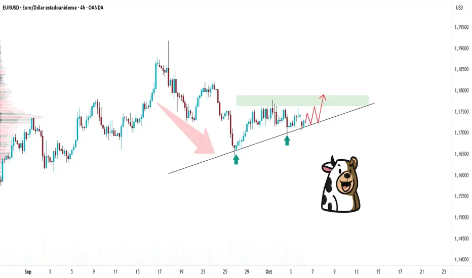 En este momento, EURUSD parece estar “parado en seco”, manteniéndose en un rango lateral alrededor de 1.1720 – 1.1790. En el gráfico H4, el precio rebota constantemente desde la línea de tendencia alcista, pero cada vez que toca la resistencia superior pierde fuerza. El mercado claramente está esperando un catalizador para explotar.