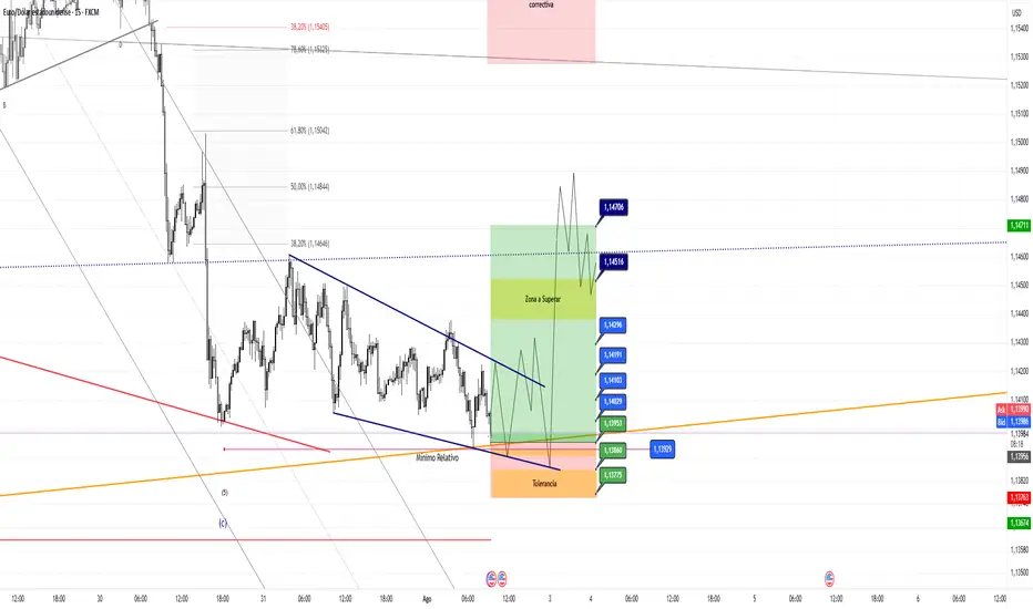 El EURO #EURUSD evaluamos concluir formación en s5 diagonal, en espera de formaciones de 3 en 3 sin cierres intermedios bajo primer compresión, en transición de corrección mayor no se desestima el inicio de B o 4 diagonal.
