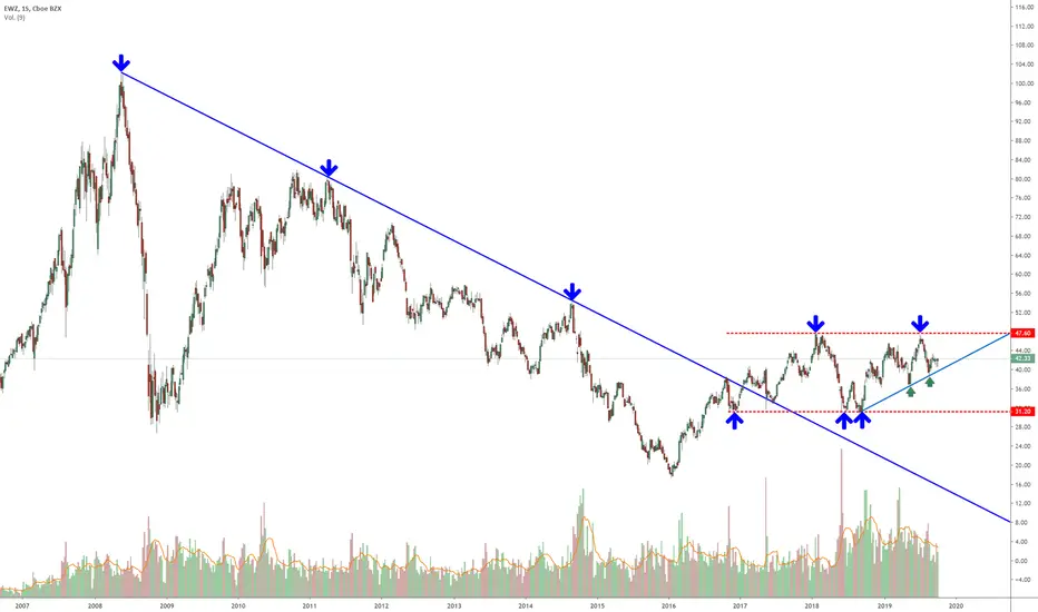 #EWZ sigue en sobre el soporte de corto plazo