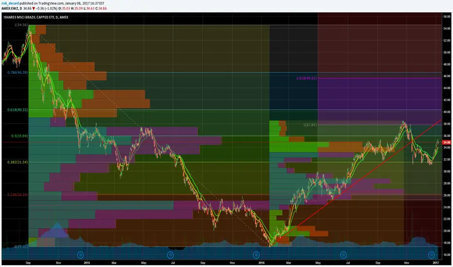 El EWZ vio si tendencia alcista comprometida en la corrección de noviembre del año pasado luego de alcanzar la zona mas probable de retroceso en 38/40
