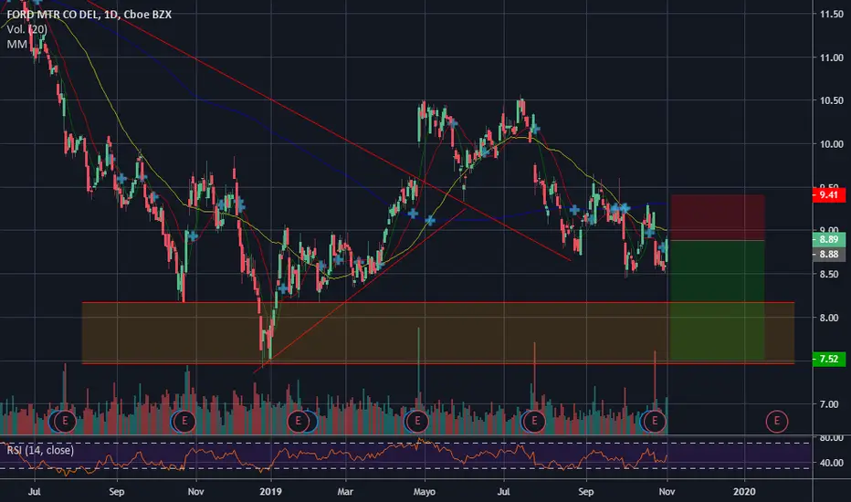 #Ford (F) estaría formando un HCH, sumado a que tenemos un DEAD CROSS en curso (cruce de medias de 50 y 200 periodos). Puede ser una buena oportunidad para completar el HCH allá por la zona de los $8 / $7.50 dolares. Se recomienda entrar con una posición liviana, e ir adicionando en el camino.