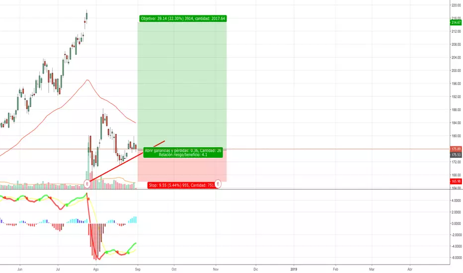 Una buena opción de compra 4 a 1 y dejar correr la operativa. Para una operativa más conservadora, esperar que el estocástico se encuentre en zona de sobreventa 20 con cruce alcista. En su caso comprar ahora y hacer una compra adicional una vez baje a nivel de sobreventa el estocástico.