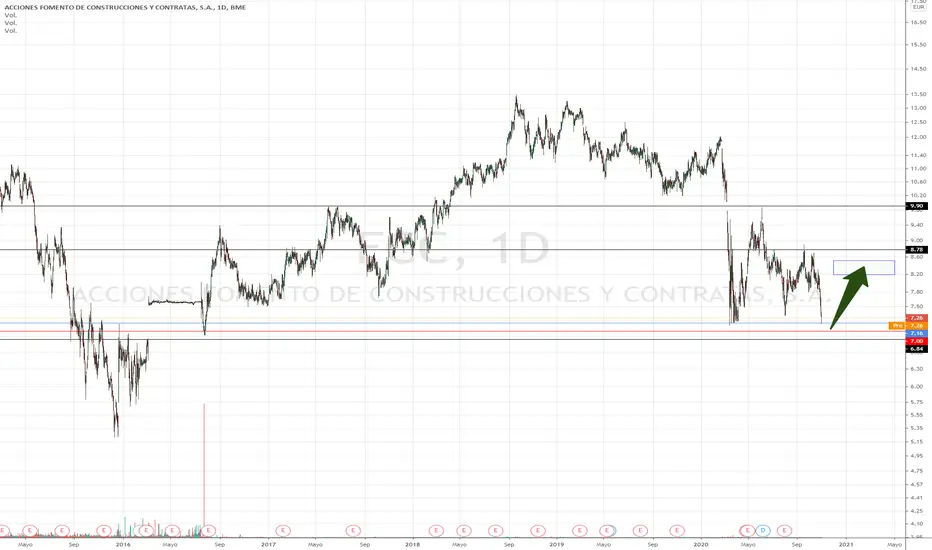 Cualquier compra en esta zona puede ir acompañada de un stop por debajode 6,85 y un Take profits en la zona de 8,30. Esto nos deja con unos beneficios 3 veces mayores que los riesgos, nada despreciable!